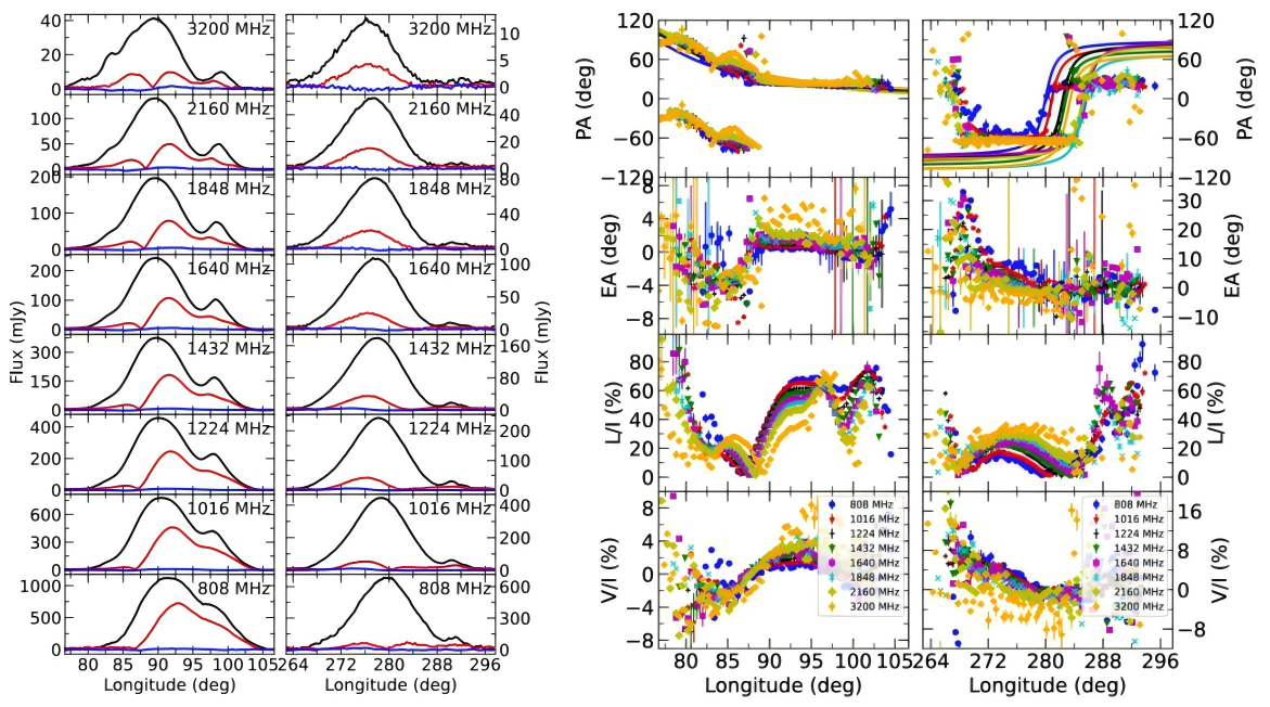 该成果证实辐射高度随频率升高而降低(脉宽变窄),主/中间脉冲可能源于磁层不同区域,为“相对论性束流模型”提供观测依据。这些发现将推动中子星磁层物理和等离子体辐射机制研究,并为引力波探测提供更精准的计时参考。